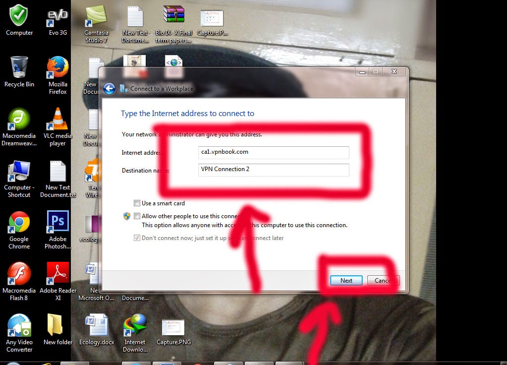 Step 2 : set up a connection and select create a work place click next click on use my internet connection