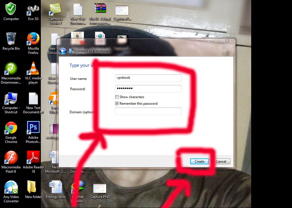 Step 5 ; now copy the user name and password and paste and check the box on remember this password click on connect now wait server is going to connect